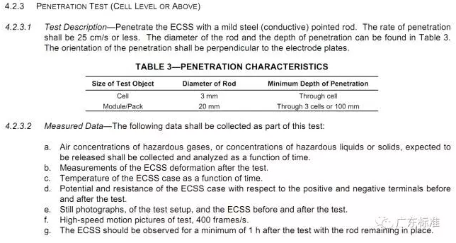 根據標準內容分析,我國標準主要是引用美國汽車工程師學會標準,與國外保持一致。針刺項目是動力電池標準中較難通過的項目,廣東省動力電池標委會根據相關資料整理了針刺改良的方法。