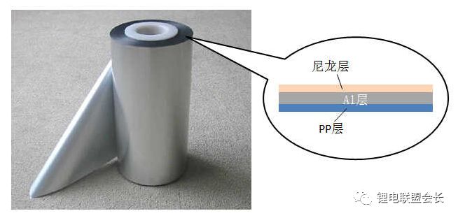 鋰電池根據(jù)封裝形態(tài)的不同主要分為兩種,金屬外殼封裝及軟包封裝。兩者的差別除了外殼材料不同,其封裝方式也不同。軟包電芯用鋁塑包裝膜作為封裝材料,主要采用熱封裝方式,而金屬外殼電芯一般使用鋼殼或者鋁殼,采用焊接(激光焊)這一封裝方式。鋁塑包裝膜示意圖如下: